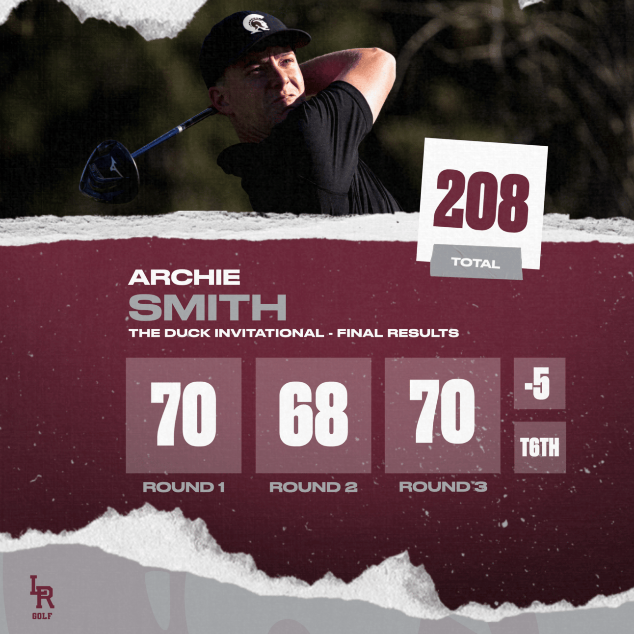 We began the week in Oregon where we held the lead after round one and had the second lowest final round score as well. Unfortunately a poor second round moved us down the leaderboard to finish 4th, but only six shots behind Oregon for the win on a bunched leaderboard. Seniors Archie Smith and Matteo Cristoni played very well finishing T6th and T8th respectively at 5-under and 4-under par. This result also led Archie to being named OVC Player of the Week.