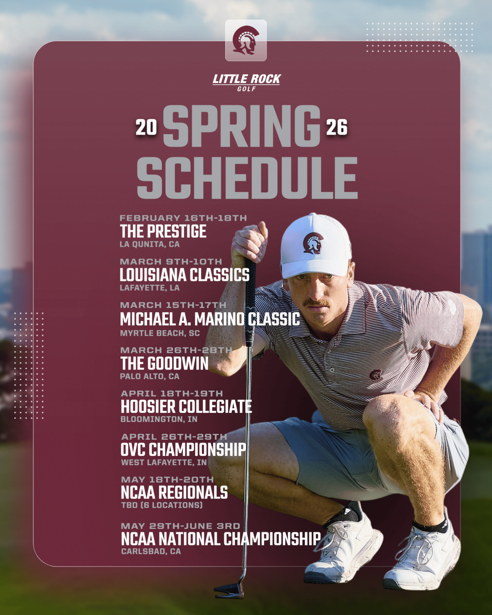 February 6th and 7th will be a great weekend for Little Rock men’s golf as we induct Daniel Fox into the Little Rock Hall of Fame! As many of you know Daniel was one of the best to ever do it in a Trojan uniform and we are excited to welcome him back to Little Rock to be recognized for his achievements. Details on the ceremony are below. The following day at 3pm during the men’s basketball game vs. SIUE all the inductees will be recognized at half time and our team will be recognized for winning the 2025 OVC Championship.