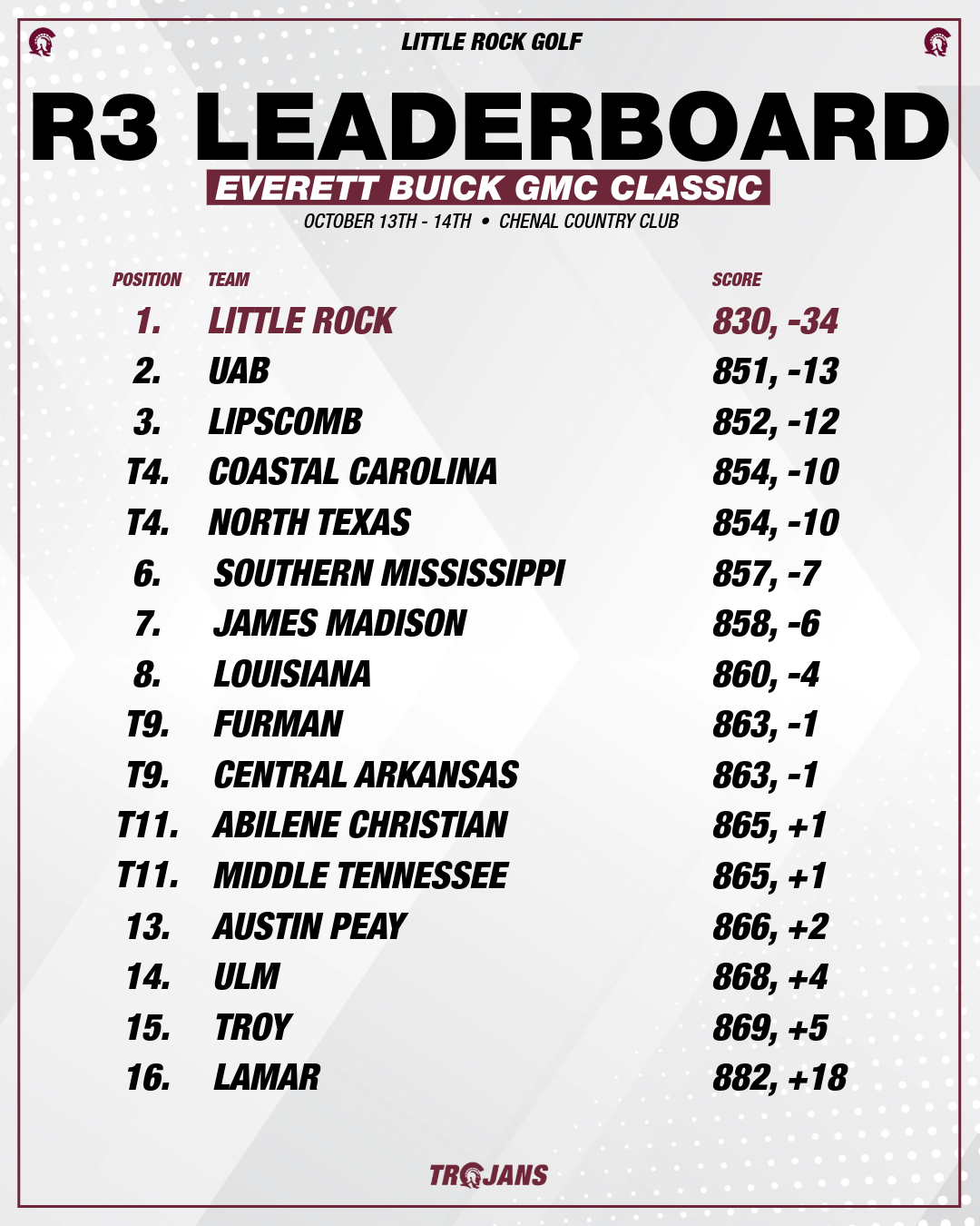 FINAL TEAM LEADERBOARD FROM CHENAL COUNTRY CLUB